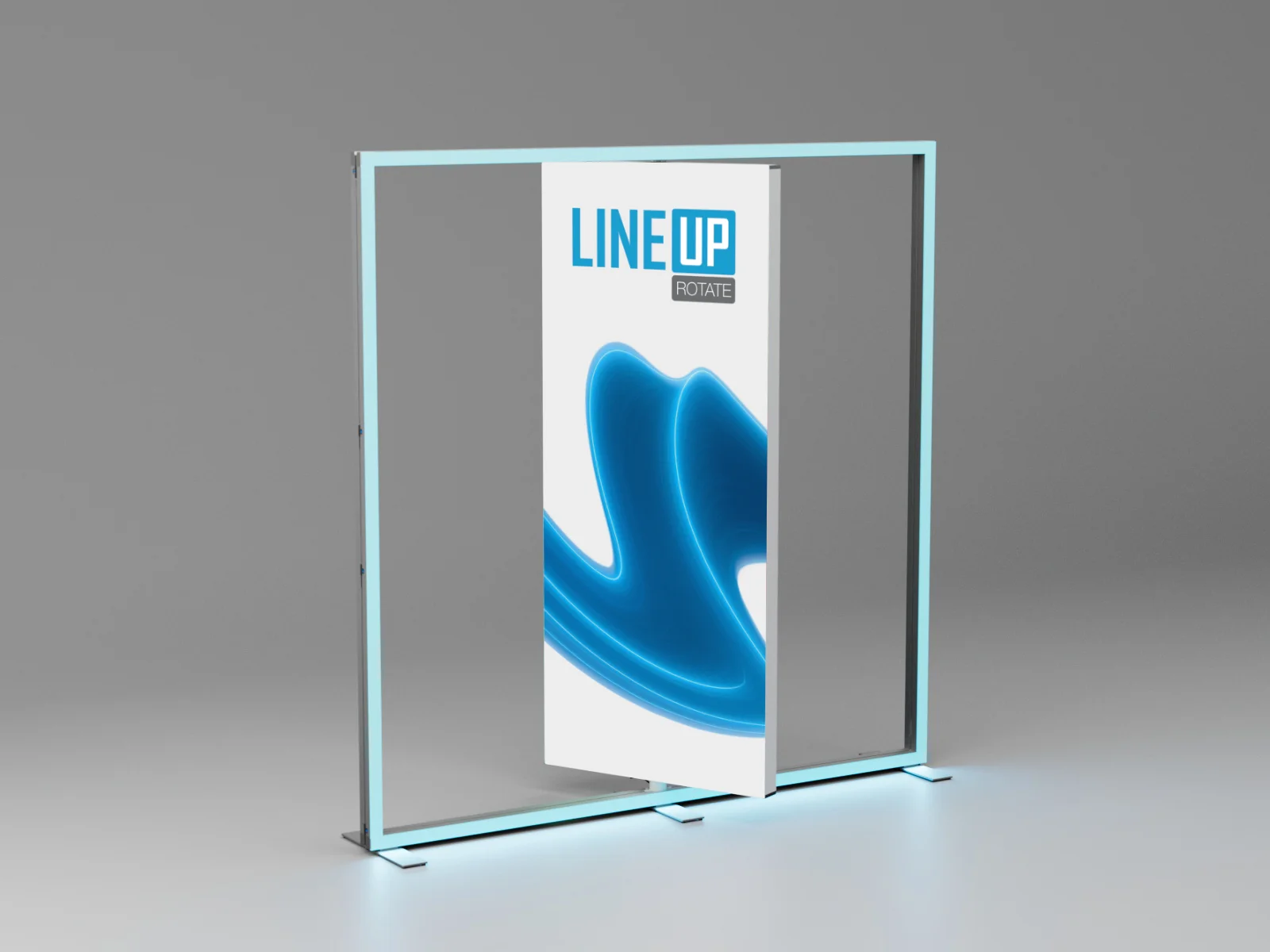 LINEUP Rotationは、LINEUPシステムに新たに加わったダイナミックな要素です。回転する発光フレームが目を引く動きと両面視認性を生み出します。回転ユニットの幅は常に100cmで、前面と背面の両方にファブリックグラフィックを取り付けることが可能です。Rotationシステムの高さは、LINEUPフレームの高さに依存します: 200cm LINEUPの場合 → フレーム高さは185cm 250cm LINEUP → フレーム高さ235cm 300cm LINEUP → フレーム高さ285cm 回転モジュールはLINEUPフレーム中央に取り付けられ、手動で中心軸に沿って回転させることが可能です。 ご注意:LINEUPフレームは付属せず、別途ご購入が必要です。