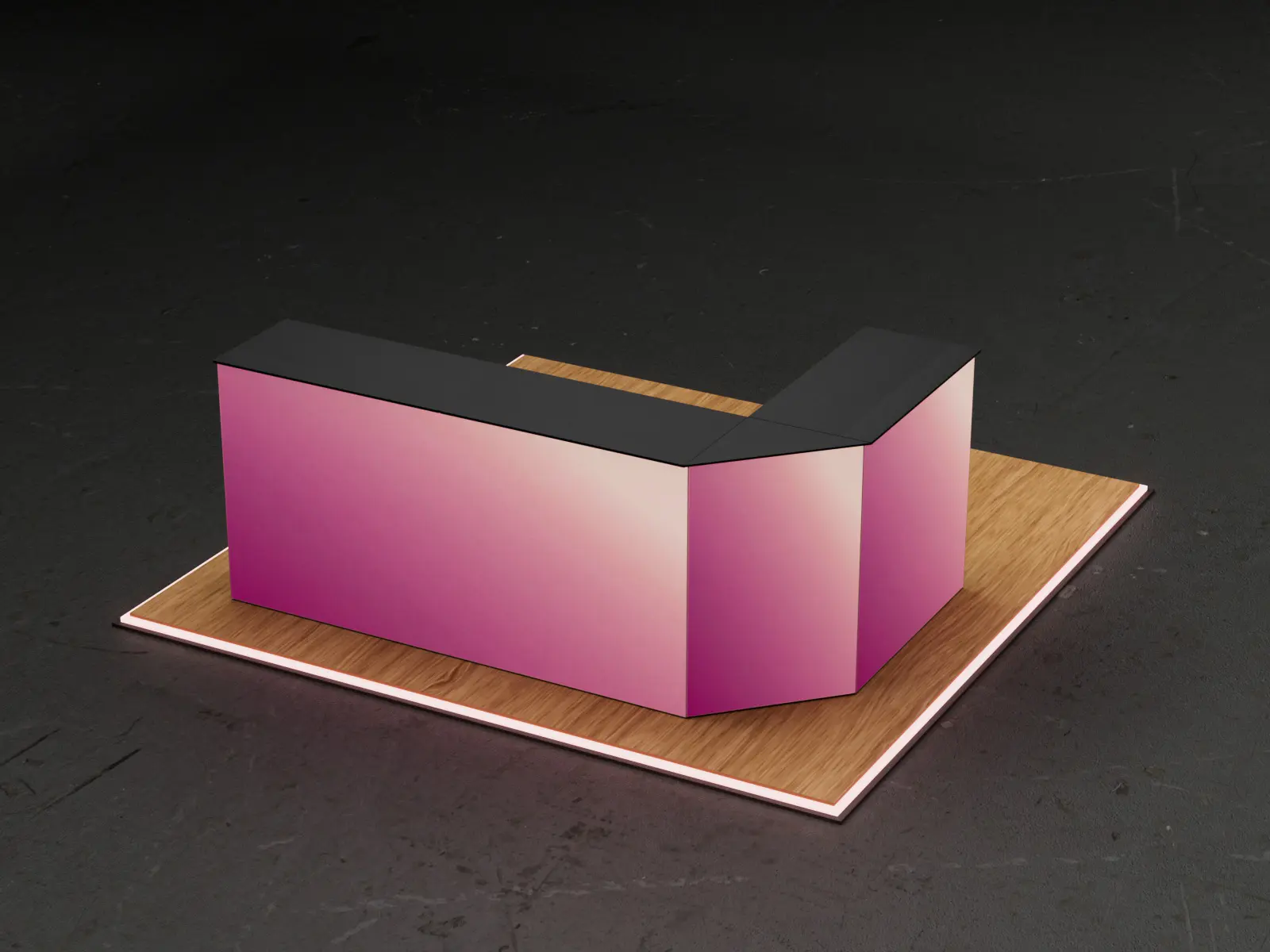 COUNTER LORENA Setは、3台の照明付きカウンターワンユニット、1つの拡張セット、90°コーナーコネクターを組み合わせ、スタイリッシュなL字型カウンターレイアウトを実現します。この構成は、展示会での開放的なコーナー設置、受付デスク、または複数の顧客接点をコンパクトな1ユニットで必要とする小売プロモーションに最適です。