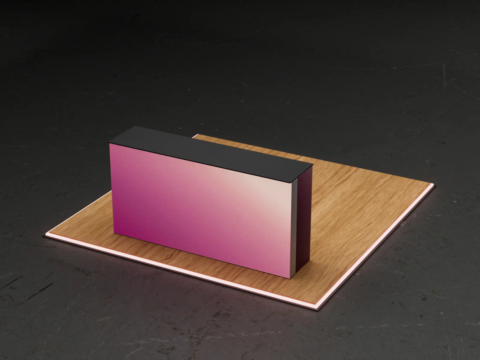シームレスな接続により、2台のカウンターは1枚のフロントファブリックを共有し、均一な発光面を実現。背面には機能的な収納スペースを設け、オプションで施錠可能な扉を取り付けることが可能です。